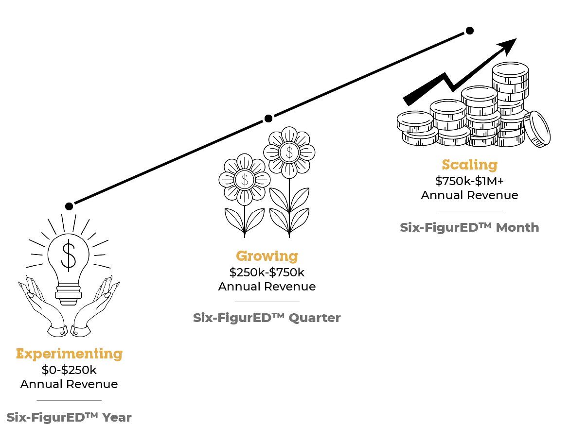 Normalizing six-figure quarters and months takes consistent focus and commitment. Each month you will receive the tools necessary to move your business forward. Your success in growing your business will be dependent on making intentional time to work ON your business vs. IN your business. Therefore, we recommend you reserve at least 2-4 hours per week to engage in mastermind content and interact in our private community group.